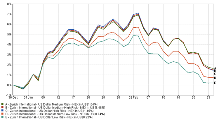 | US Dollar Medium Risk Blend | 0.33% | 1.91% | 10.78% | 16.92% | 13.18% | 36.05% |