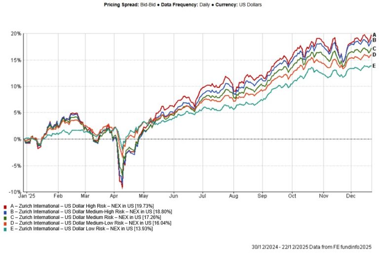 | US Dollar Medium Risk Blend | -0.38% | 2.14% | 10.46% | 17.26% | 16.81% | 31.79% |