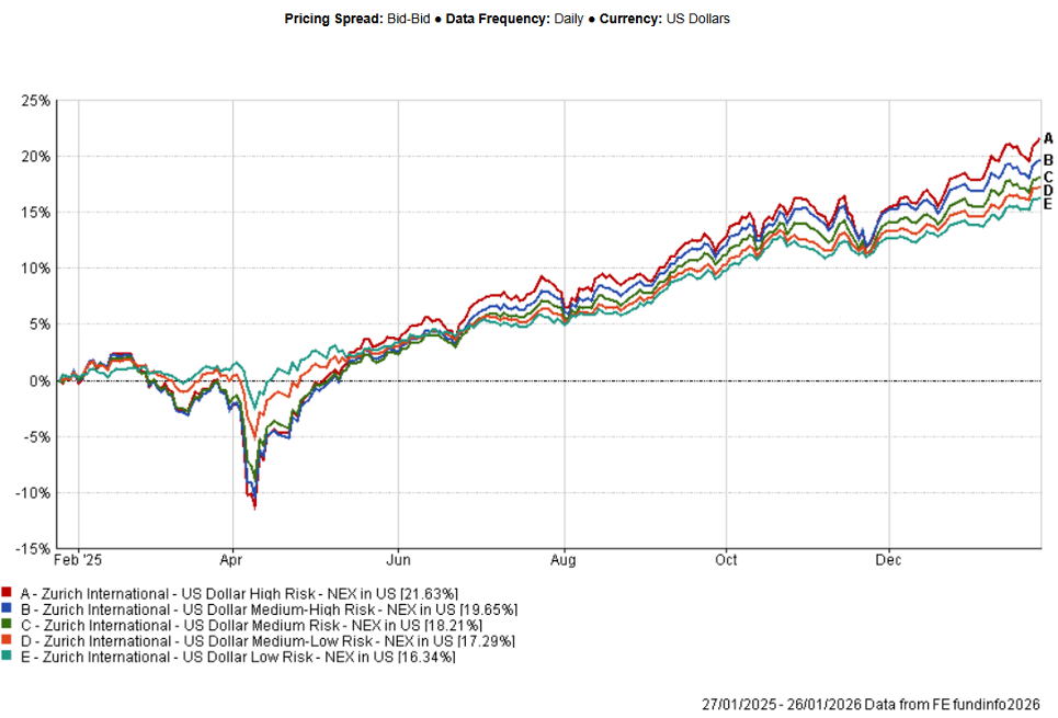 | US Dollar Medium Risk Blend | 0.93% | 2.26% | 10.43% | 2.14% | 17.52% | 35.51% |