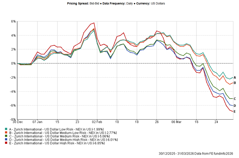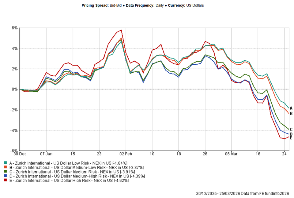 | US Dollar Medium Risk Blend | -3.87% | -6.42% | 0.26% | -3.91% | 11.53% | 21.93% |